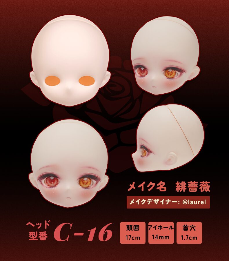 C-16:頭囲:17cm、アイホール:14mm、首穴直径:1.7cm