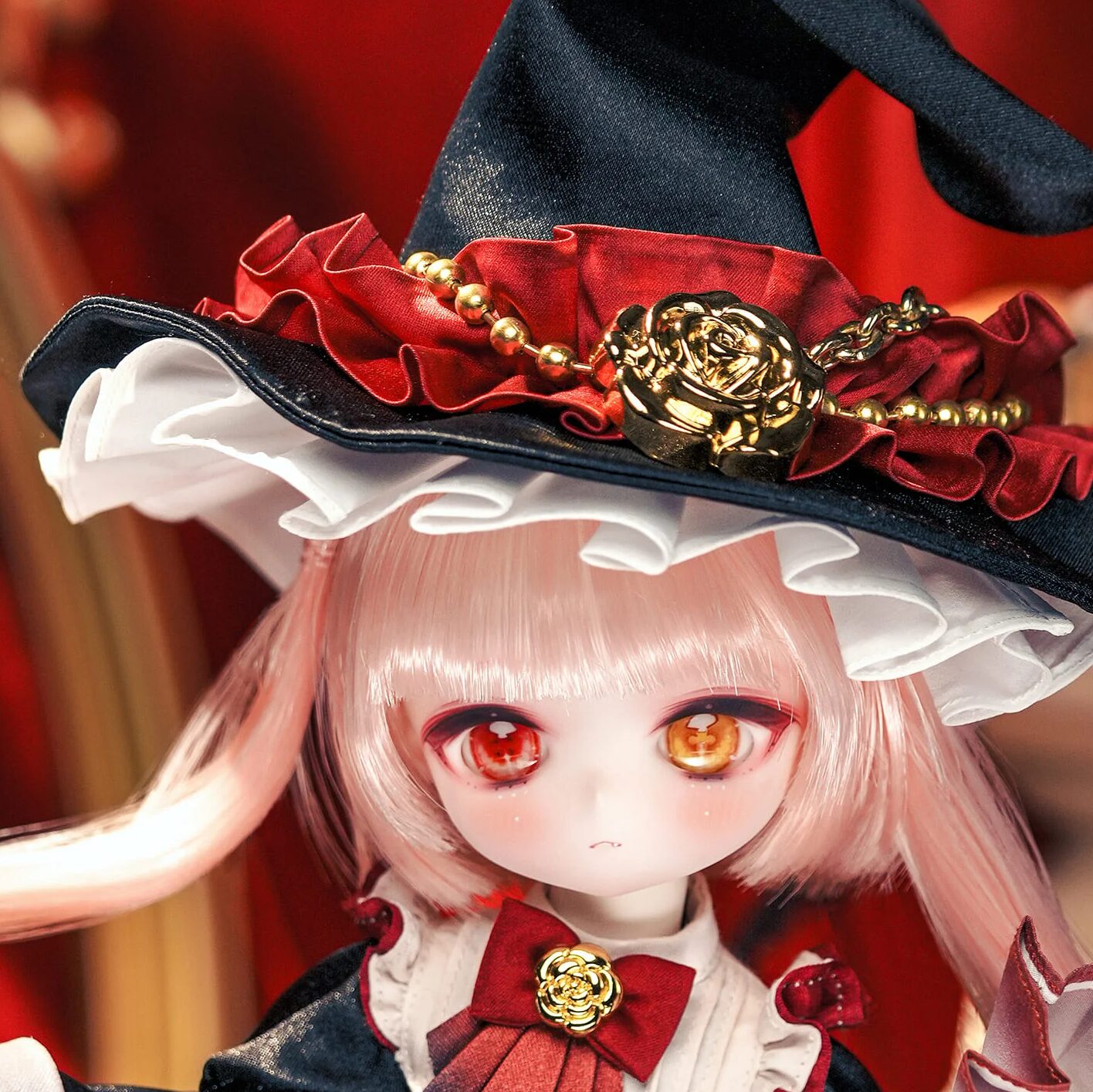 夜空に幽月が高く懸かる時―― 万霊節前夜祭(ハロウィン)の魔法は、フローラに「鴉羽紅薔(がうのこうしょう)」の装を纏わせる。 淡き粉の髪は星夜の光を受けて流れ、紅き瞳は秘められた囁きを灯す。 黒と紅が織りなす礼装は、まるで暗夜に咲く薔薇のごとく艶やかに揺らめき、 指先がひとたび舞えば、血の薔薇が熱を帯びて咲き誇る―― それは、この夜だけに捧げられし「緋夜の讃歌」。