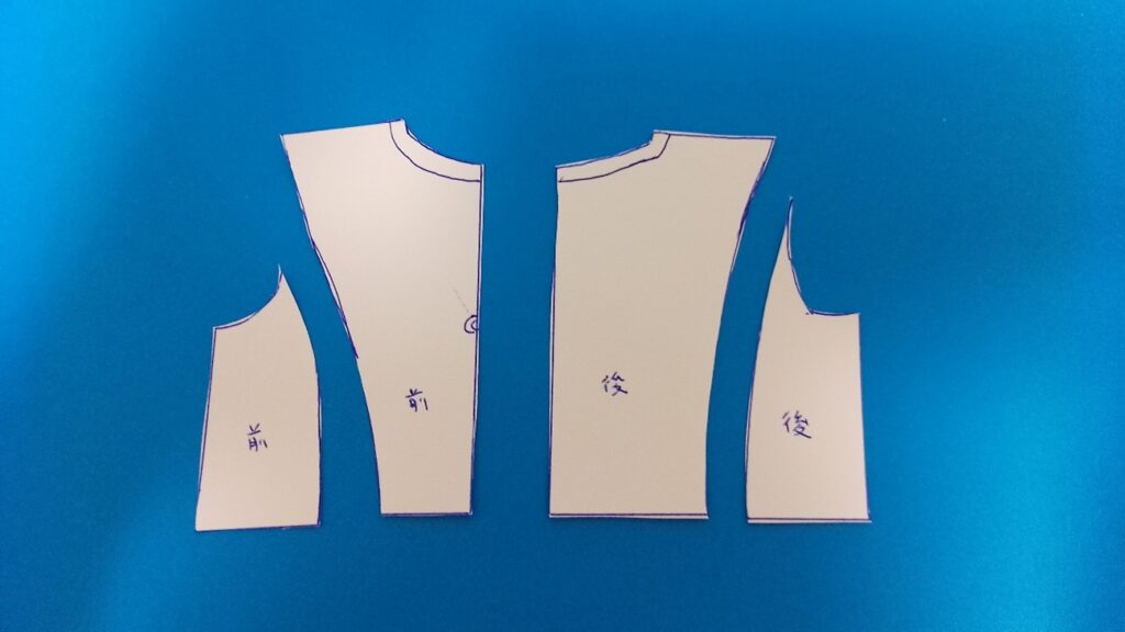 そこで袖パーツをもう少し広げ、身頃とのバランスを調整して再度カット✂