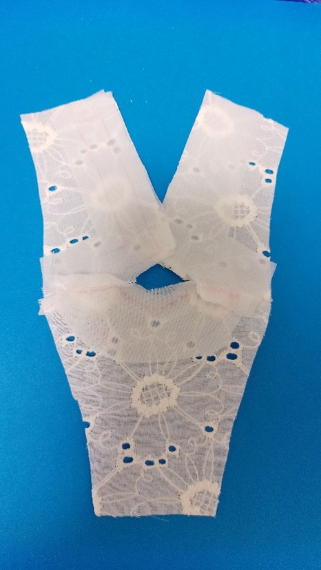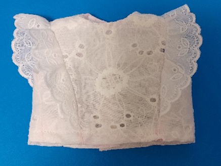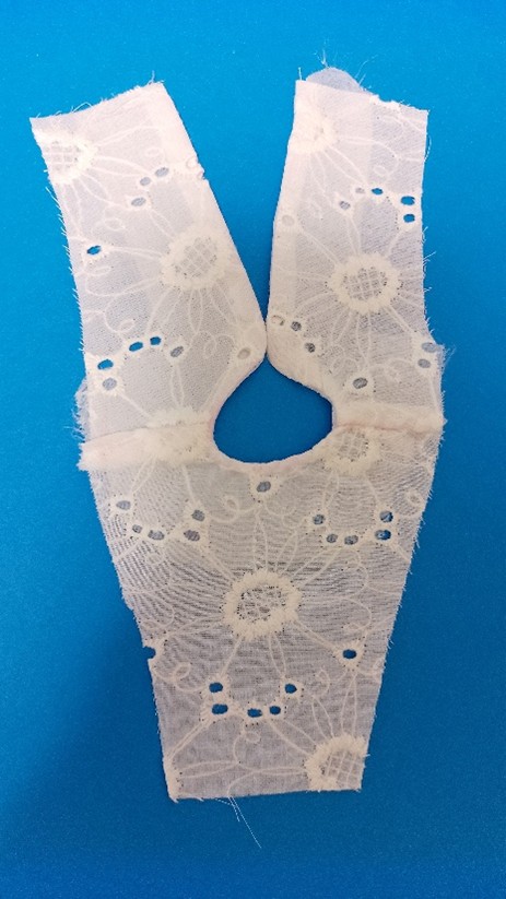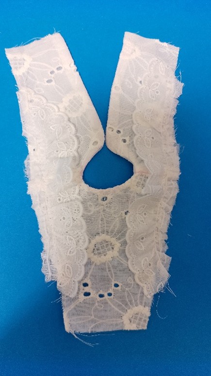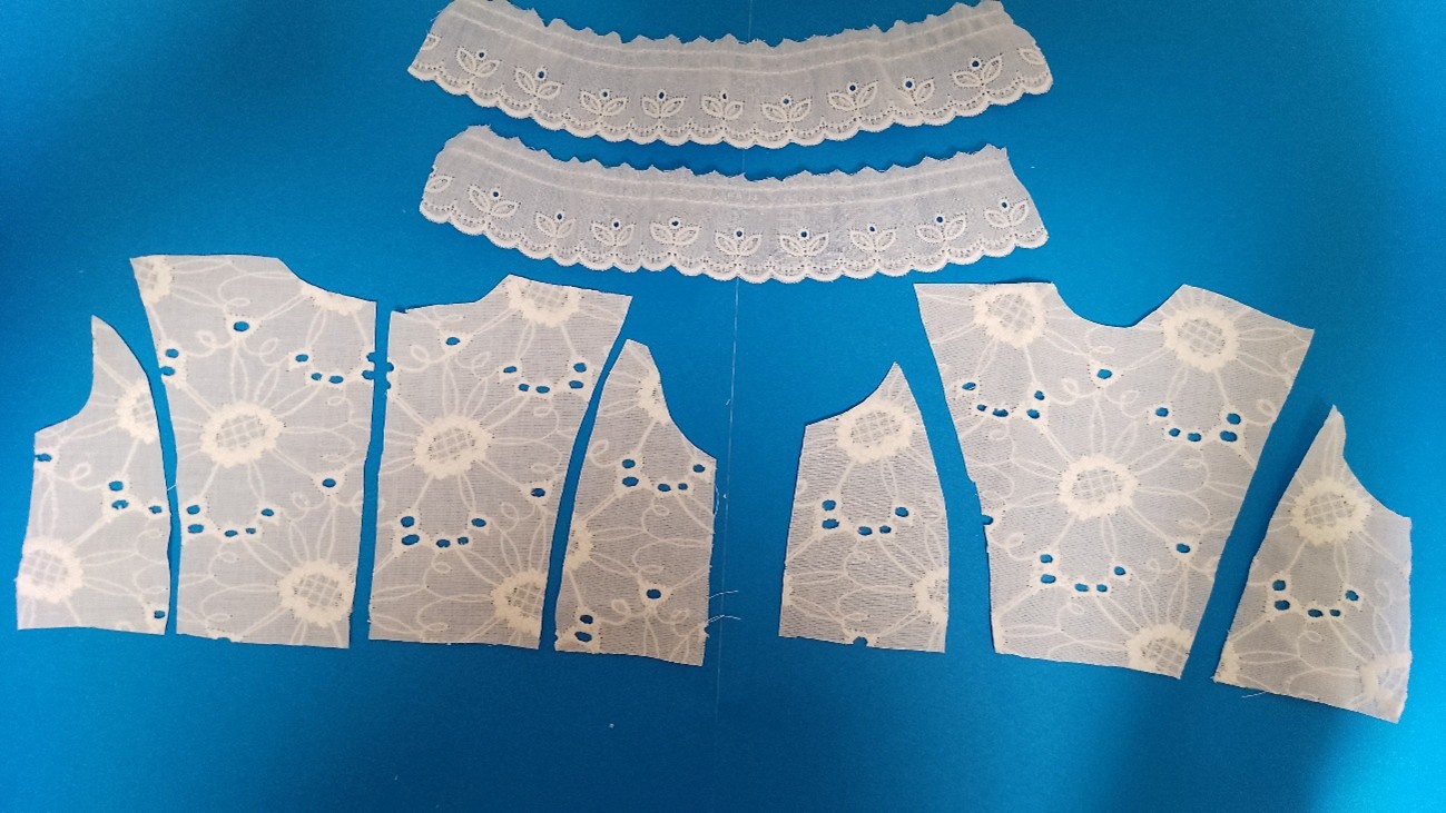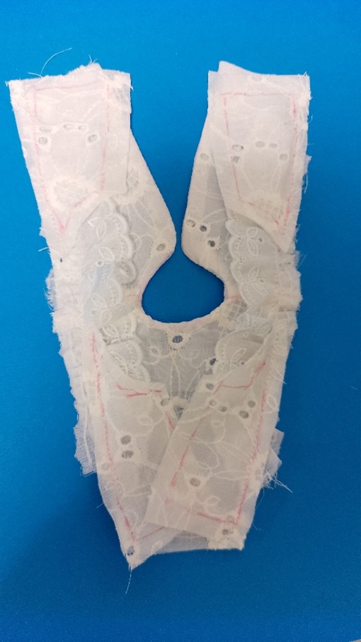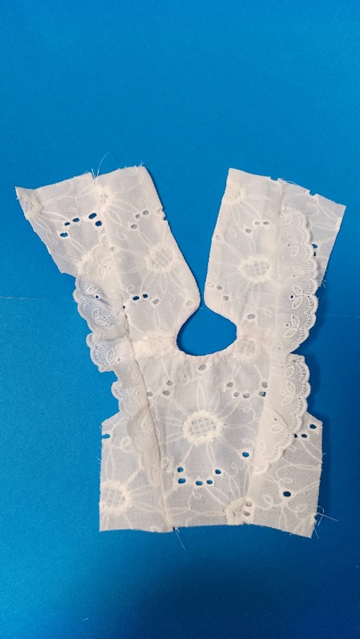 3.袖と脇部分にギャザーを寄せたレースを縫い付ける