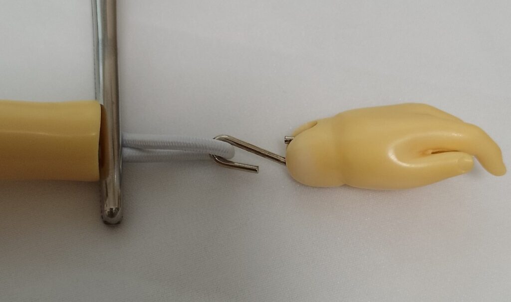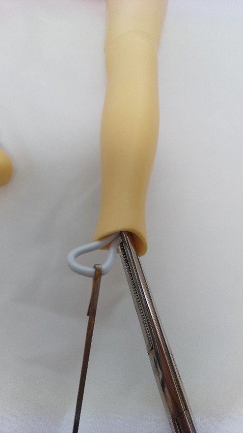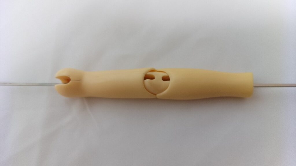 パーツを通したら、鉗子を使いハンドパーツをセットする