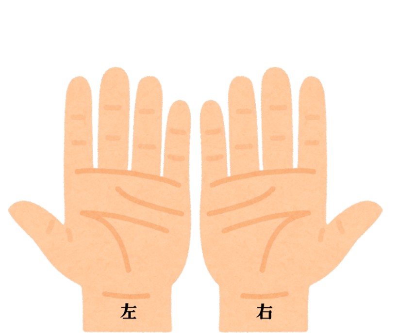 手のひらを上にしたとき、外側に親指が配置されるように並べるとわかりやすくなります