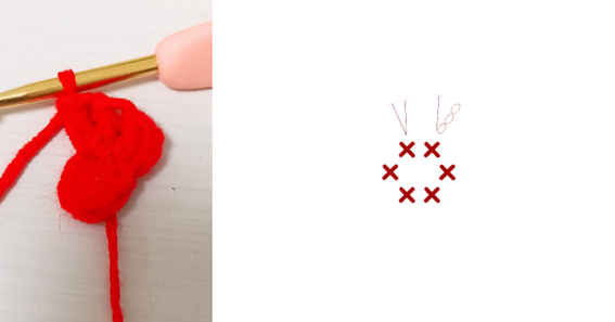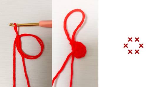 輪を作って細編みを6目作ります